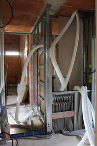 • Installazione di un impianto fotovoltaico integrato nella copertura, con inverter, batterie di accumulo e colonnina per la ricarica di auto elettriche.